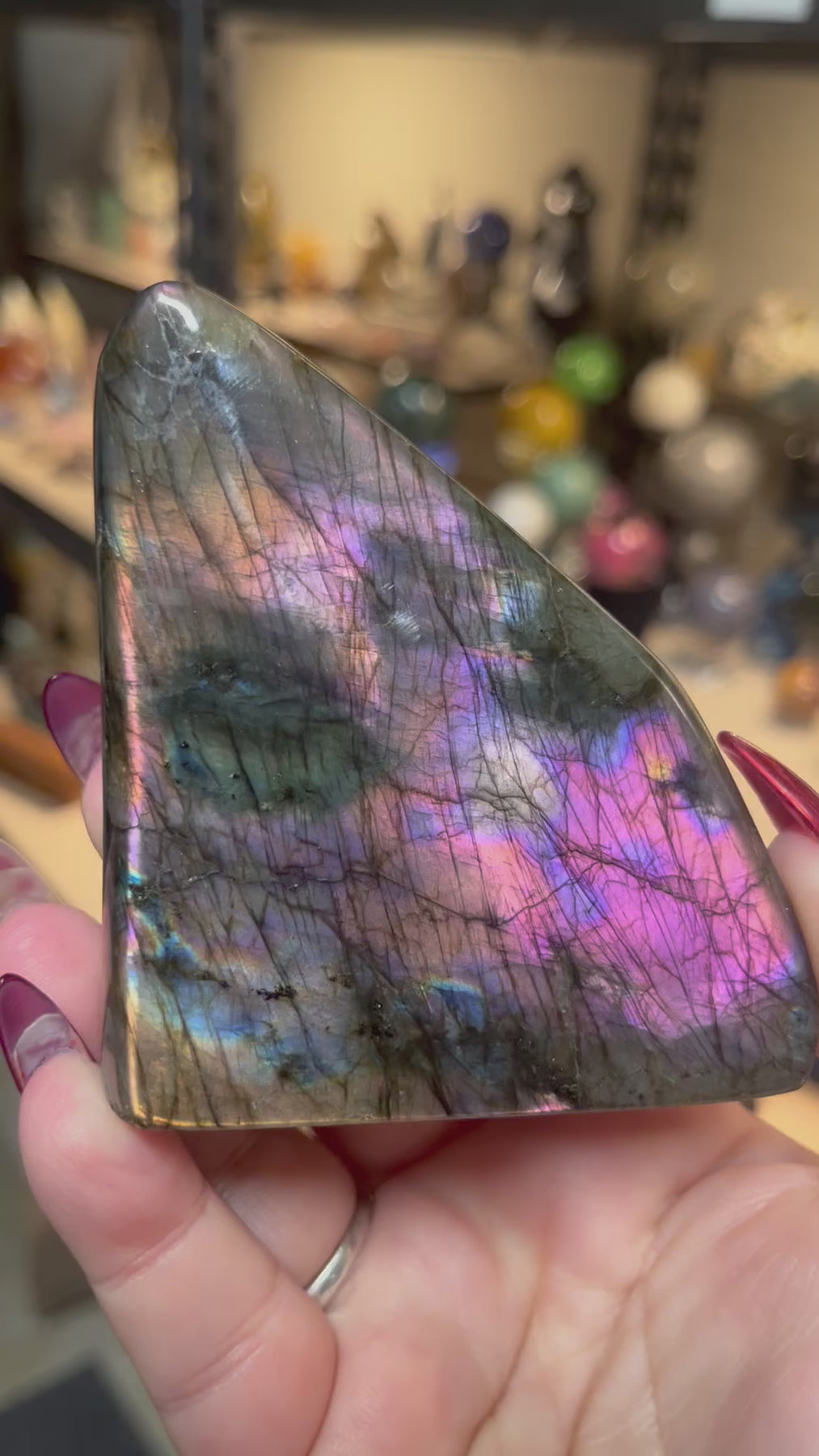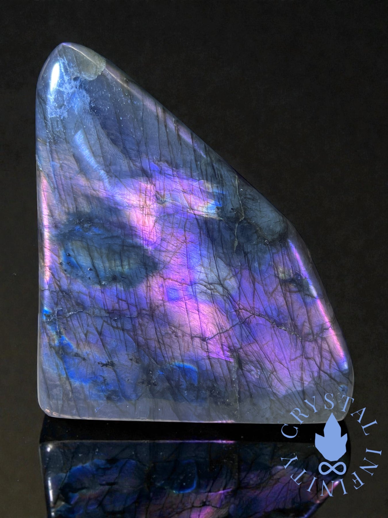 Labradorite Freeform approximately 3.5”x3” freeform featuring purple and pink flash.
